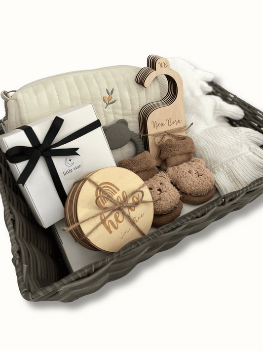 Neutral Baby Gift Set Grey Hamper Basket
